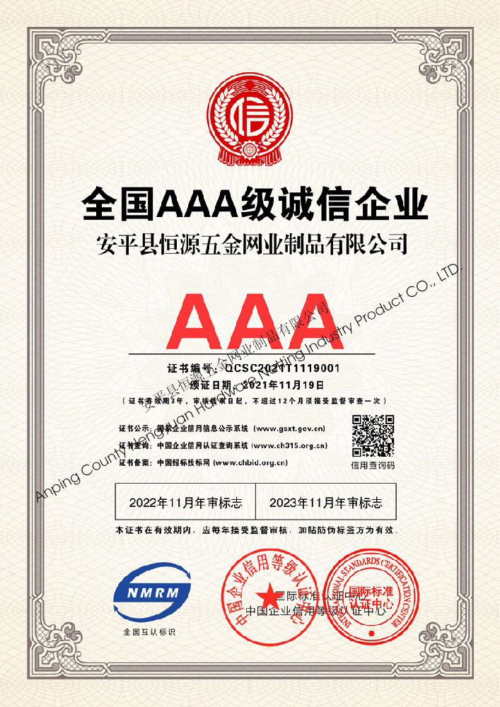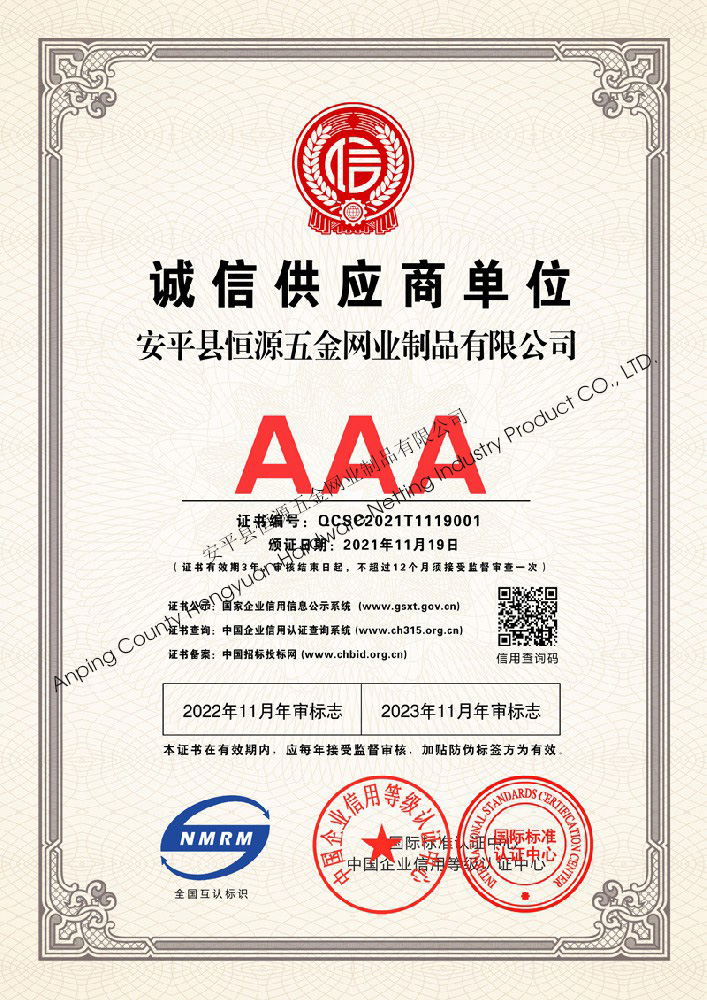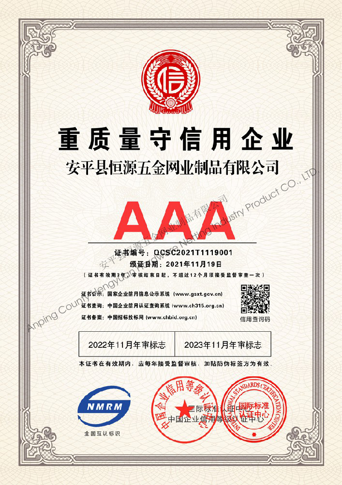 多年來(lái),安平縣恒源五金網(wǎng)業(yè)制品有限公司堅(jiān)持“科技興企、質(zhì)量立業(yè)”的經(jīng)營(yíng)理念和“誠(chéng)心為本、客戶(hù)至上”的合作宗旨,優(yōu)化生產(chǎn)工藝,打造優(yōu)質(zhì)產(chǎn)品,提供完善的服務(wù),受到國(guó)內(nèi)外客戶(hù)的一致好評(píng),產(chǎn)品行銷(xiāo)全國(guó)各地,并出口美國(guó)、德國(guó)、韓國(guó)、日本、臺(tái)灣等國(guó)家和地區(qū)。